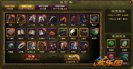 消耗龙魂玉、凤魄玉、虎纹玉、玄龟玉这四种宝玉(可在副本与活动中得到)巧取传说与史诗宝物!