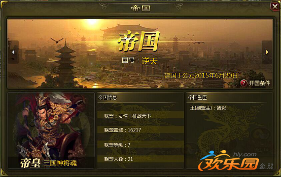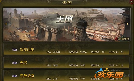 连续三天圈地排名第一且圈地超过四千,就可以成为帝国,帝国成员每日可以领取额外银锭!每天14:30刷新!且会在聊天中有特别的标识!还能自己更改国号!更有王国、公国称号等着你!快和联盟同伴们一起接受这份荣誉吧!